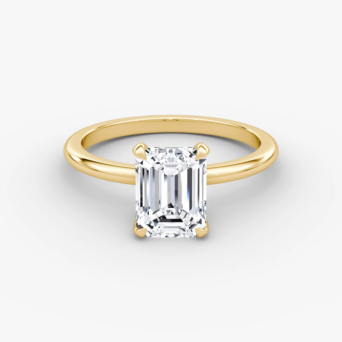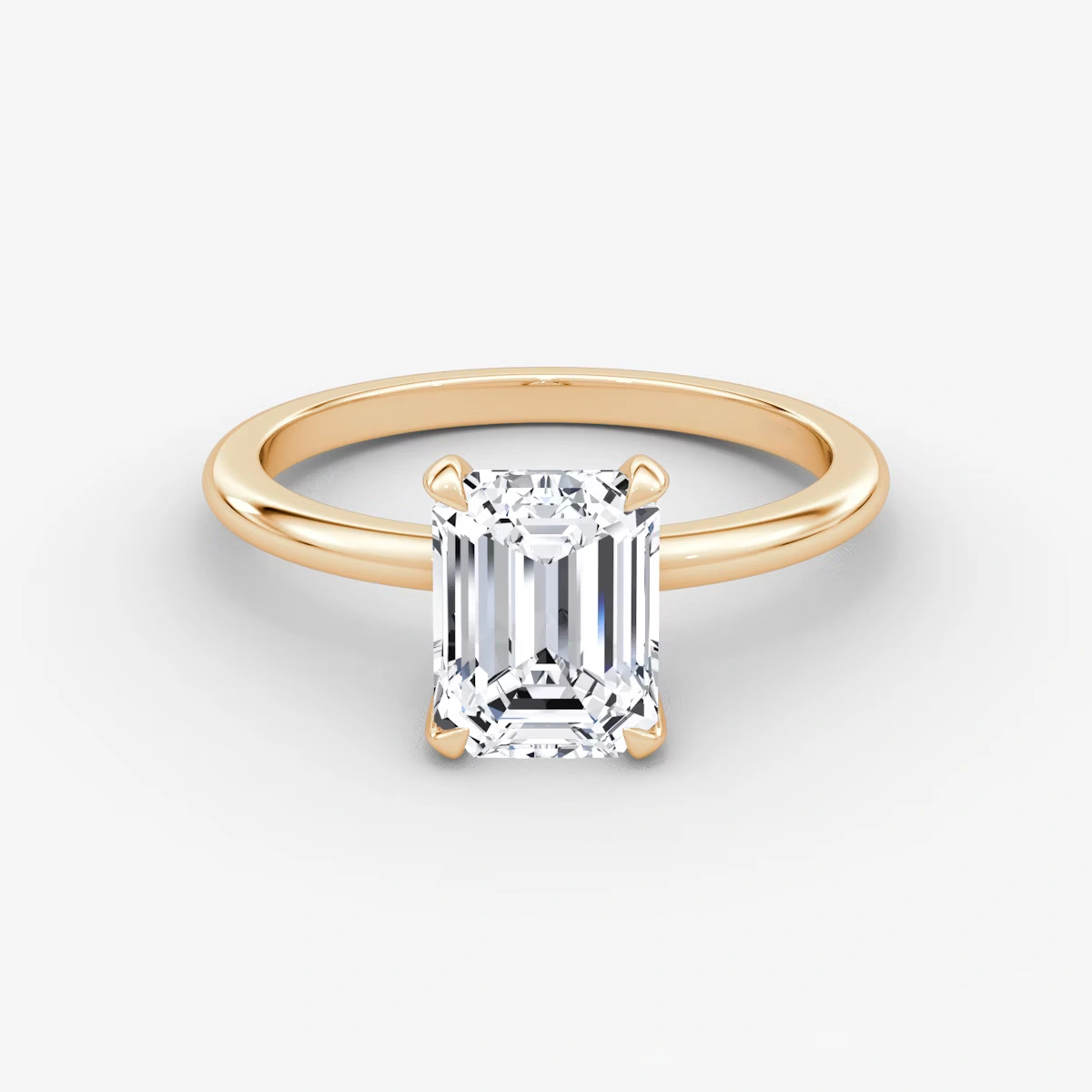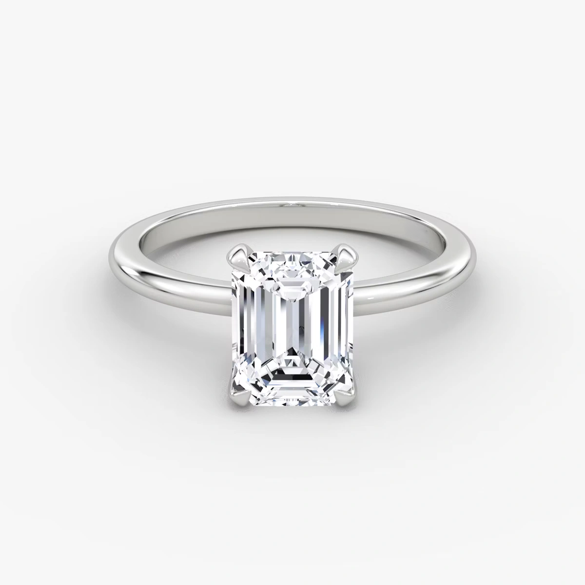 Set with an Emerald-cut diamond, known for its mesmerizing stepped facets and captivating geometric brilliance.