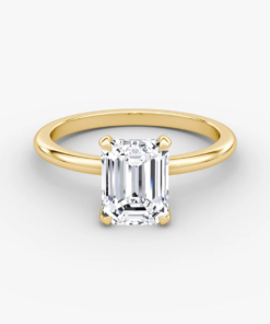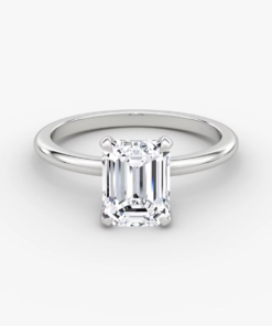 This ring, crafted in 14k gold with an Emerald-cut diamond and classic four-prong design, combines simplicity and luxury, making it a perfect symbol of eternal love and refined taste.”