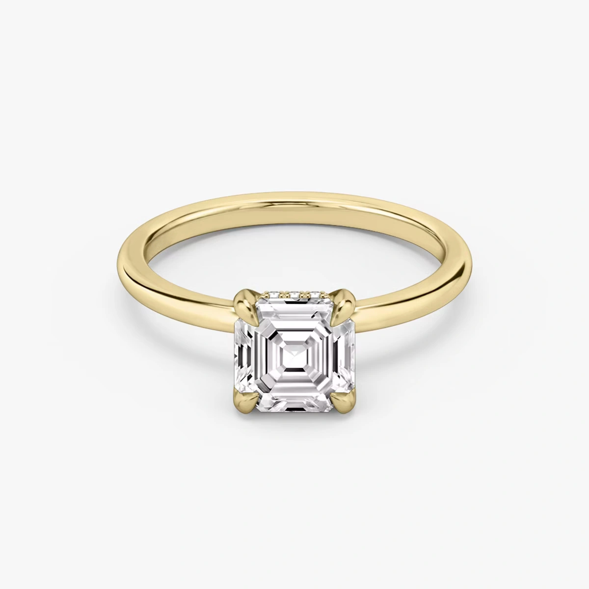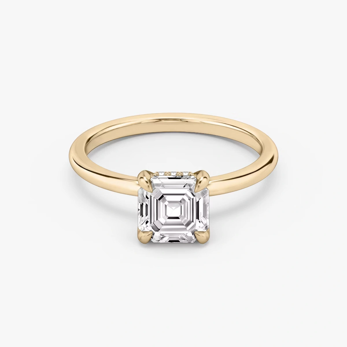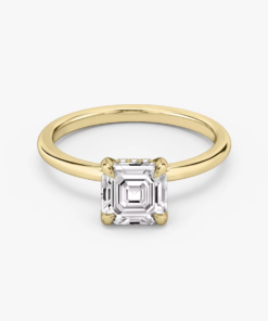 This ring, crafted in 14k gold with an Asscher-cut diamond and hidden halo design, seamlessly combines simplicity and luxury, making it the perfect symbol of eternal love and refined taste.”
