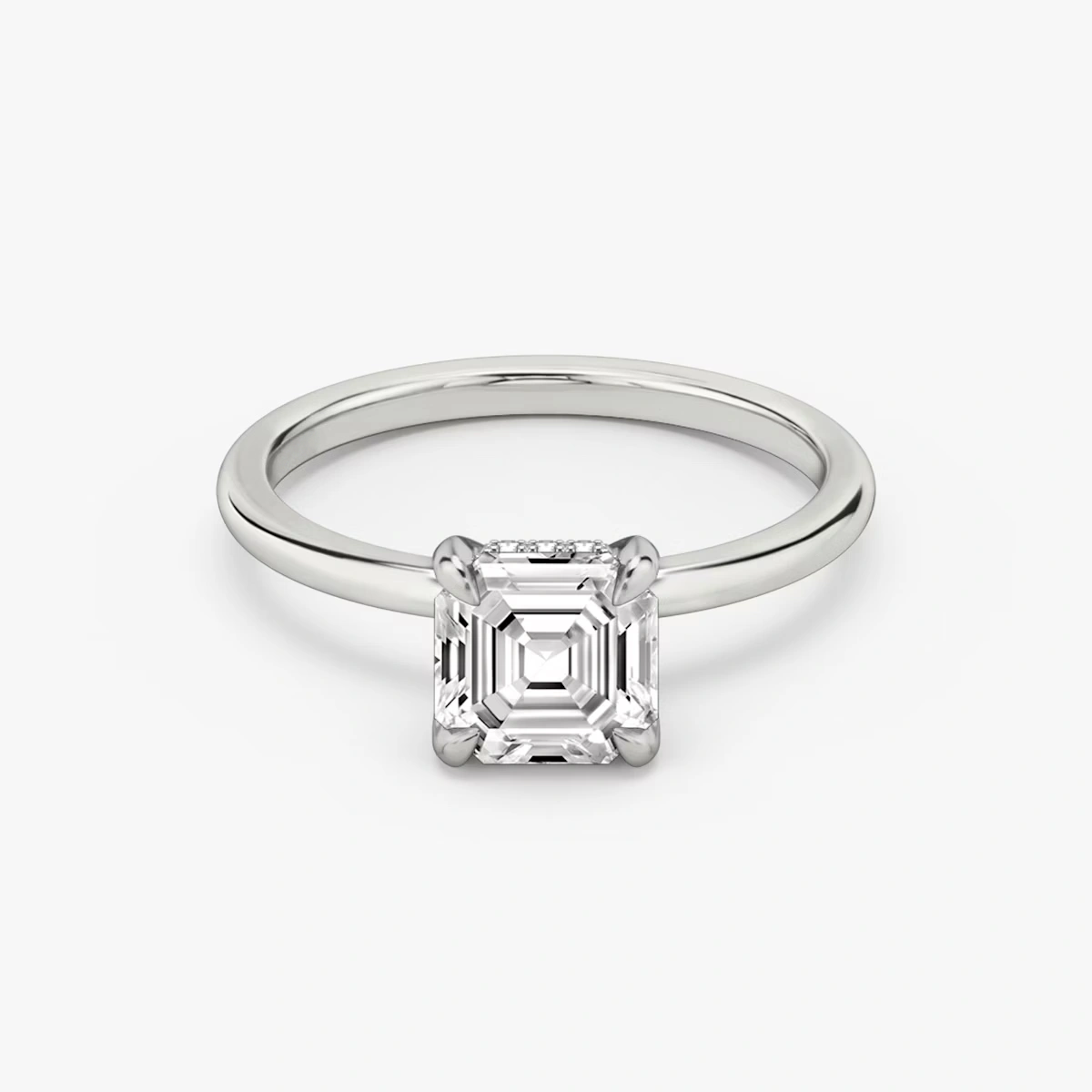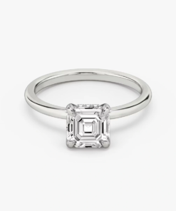 Set with an Asscher-cut diamond, known for its geometric steps and captivating brilliance.