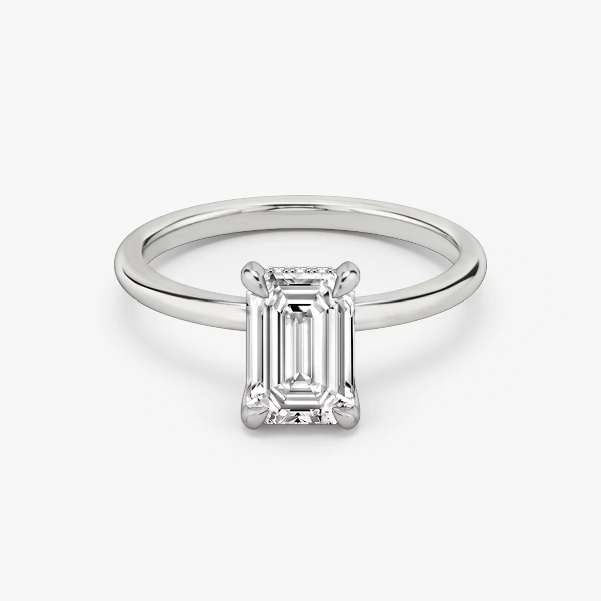 This ring, crafted in 14k gold with an Emerald-cut diamond and hidden halo design, seamlessly combines simplicity and luxury, making it the perfect symbol of eternal love and refined taste.”