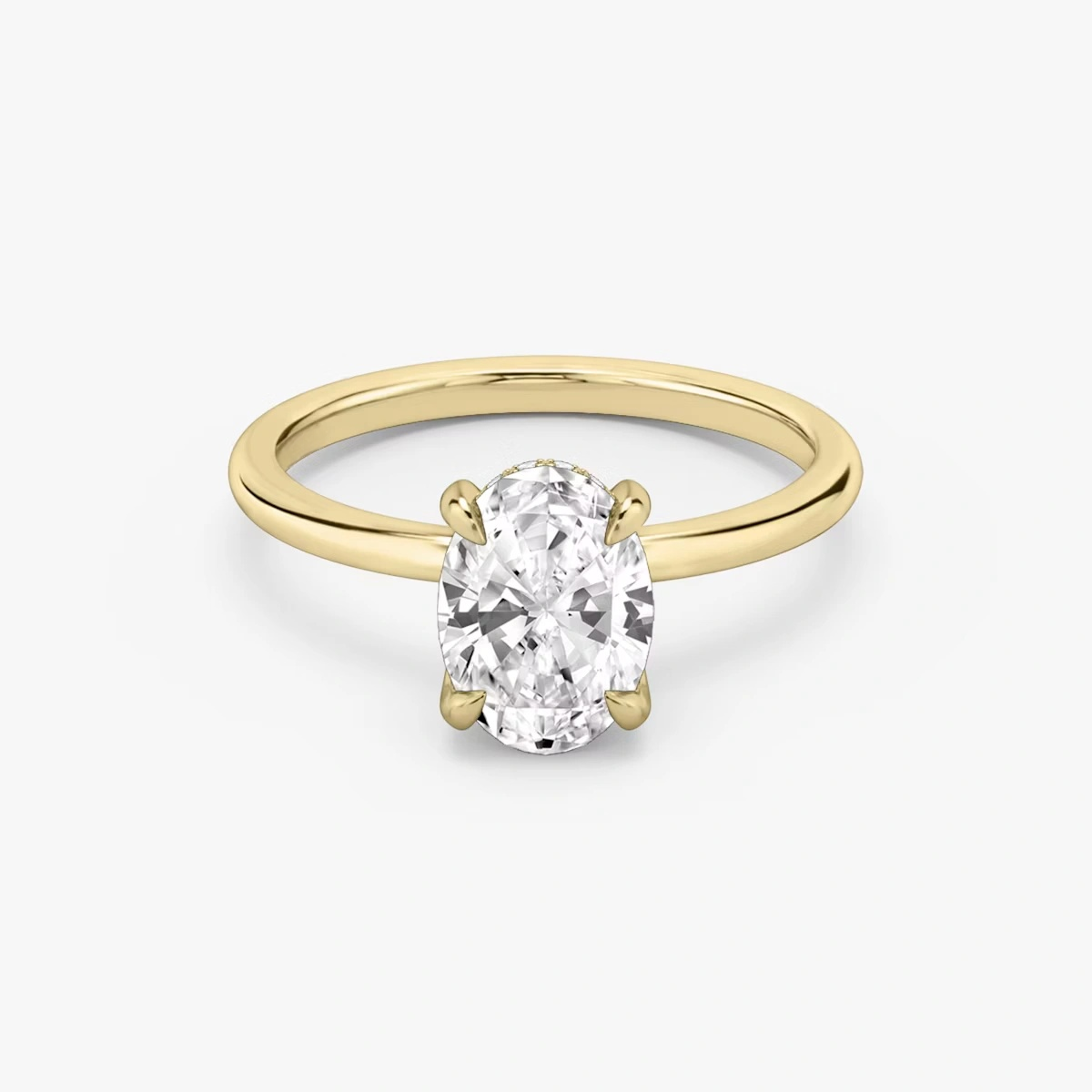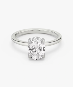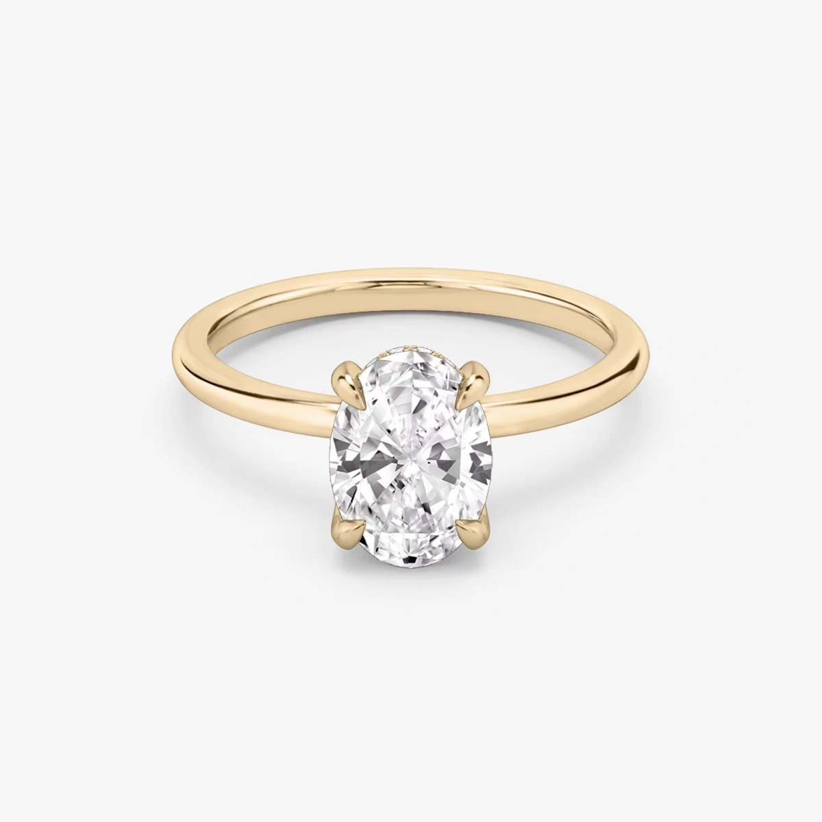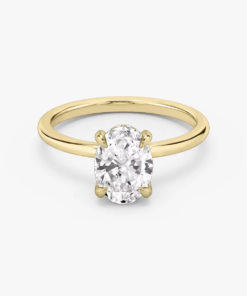 This ring, crafted in 14k gold with an Oval-cut diamond and hidden halo design, seamlessly combines simplicity and luxury, making it the perfect symbol of eternal love and refined taste.”