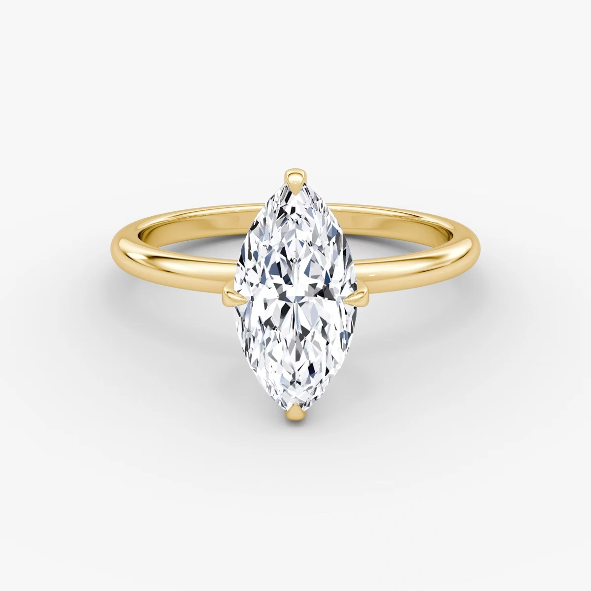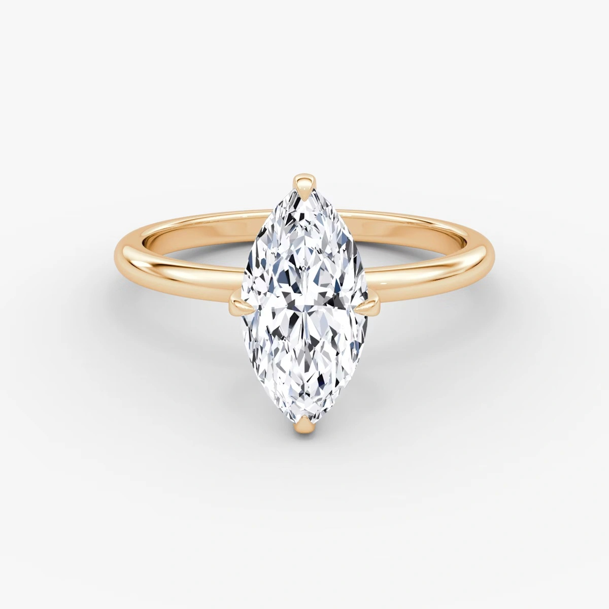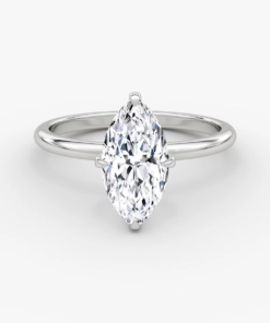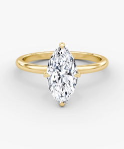 This ring, crafted in 14k gold with an Marquise-cut diamond and classic four-prong design, combines simplicity and luxury, making it a perfect symbol of eternal love and refined taste.”