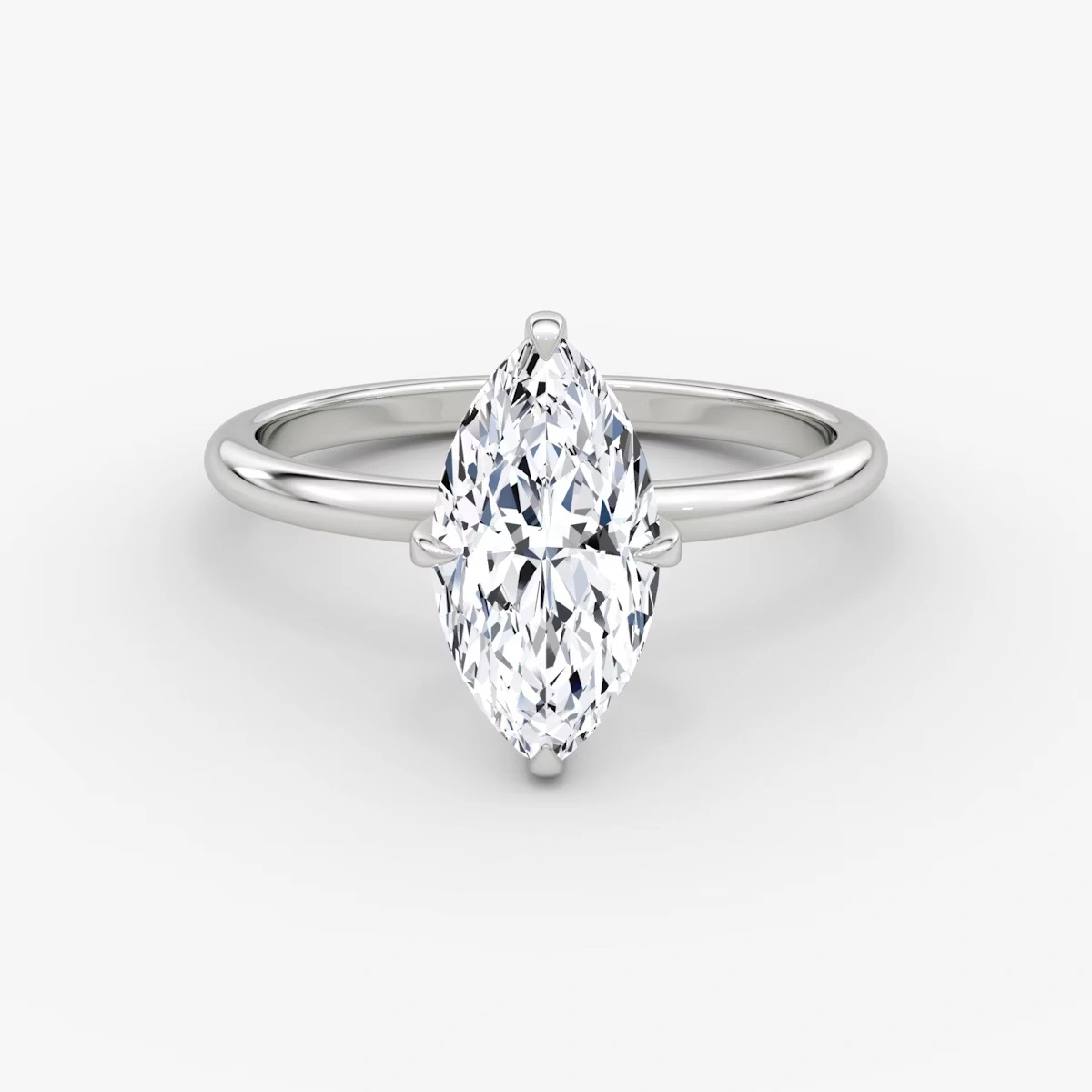 The iconic Marquise-cut diamond is paired with clean and fluid band lines, blending modern simplicity with timeless elegance.