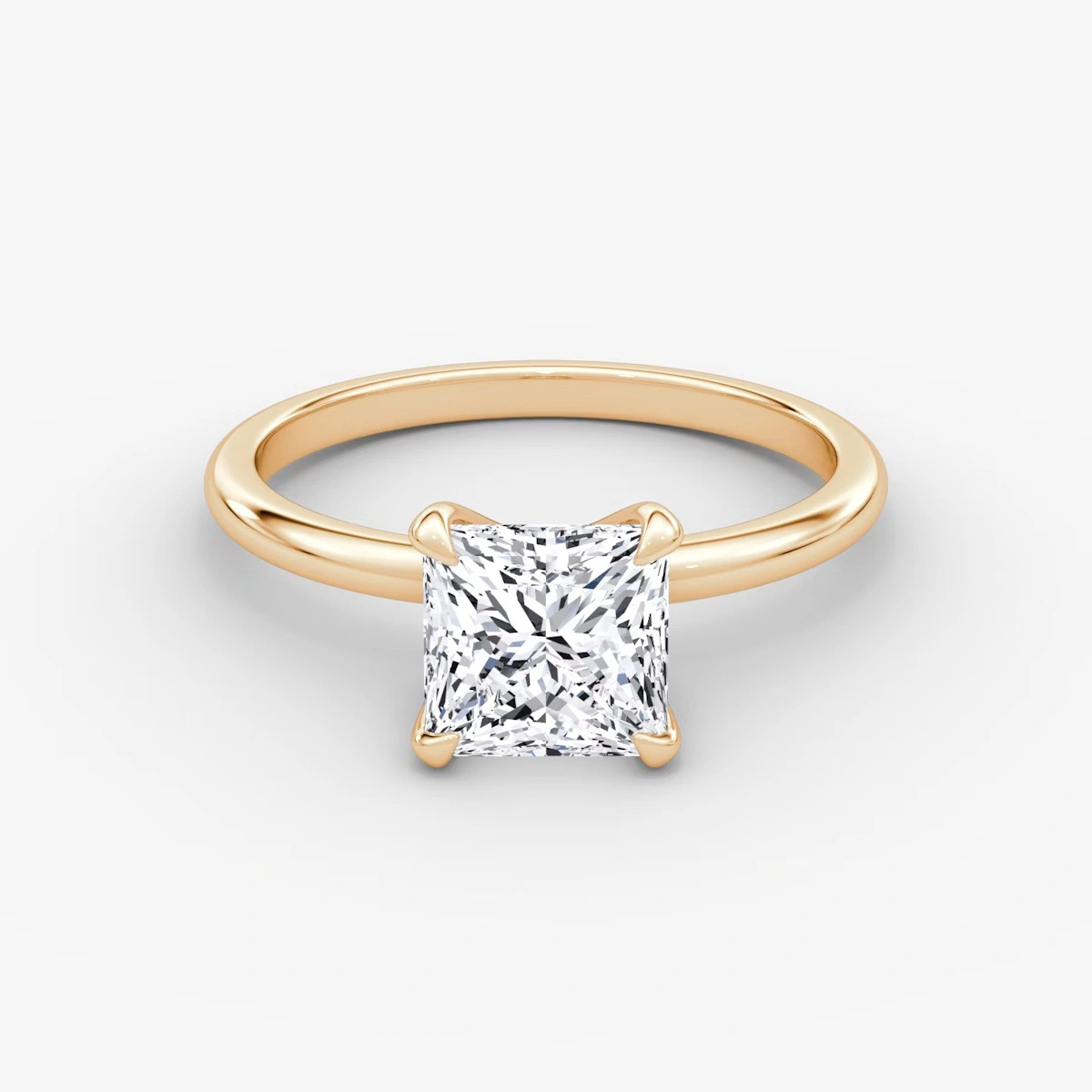 Set with an Princess-cut diamond, known for its mesmerizing stepped facets and captivating geometric brilliance.