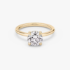 Four curved prongs securely cradle the center stone, allowing light to enter from every angle for maximum brilliance.