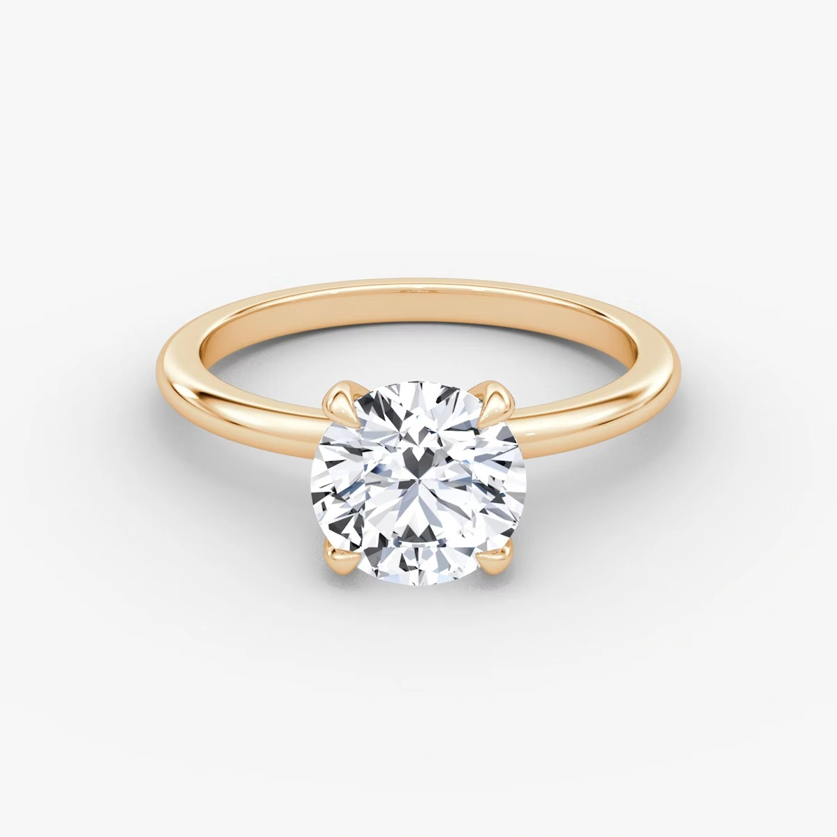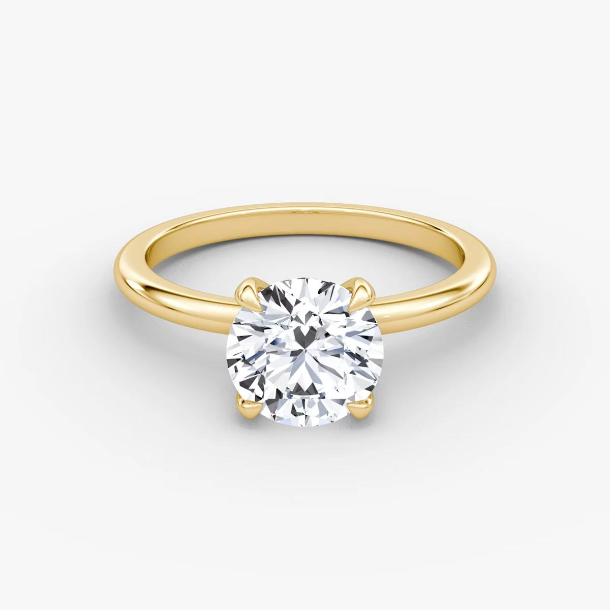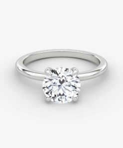 The “Classic” collection features a minimalist four-prong solitaire setting that highlights the diamond’s brilliance and purity.