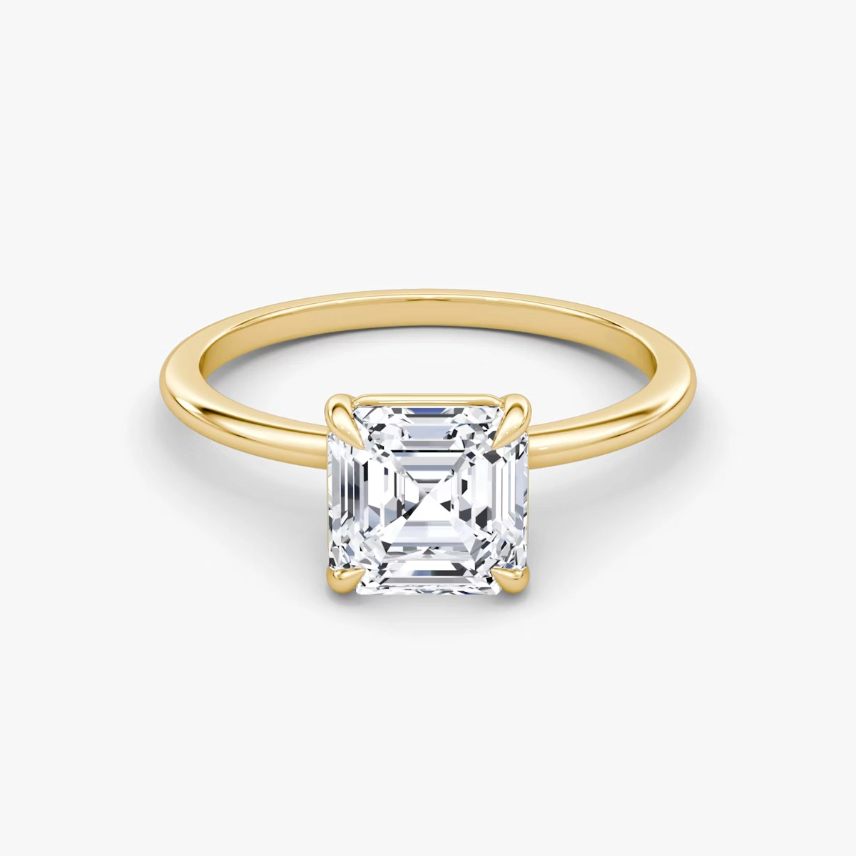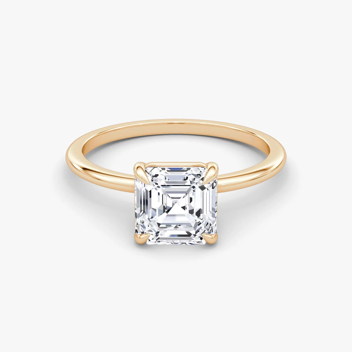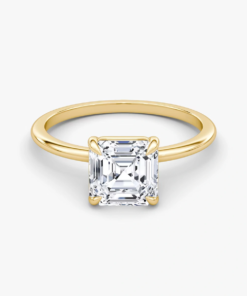 This ring, crafted in 14k gold with an Asscher-cut diamond and slender four-prong design, perfectly balances simplicity and luxury, making it an ideal symbol of eternal love and sophisticated taste.”