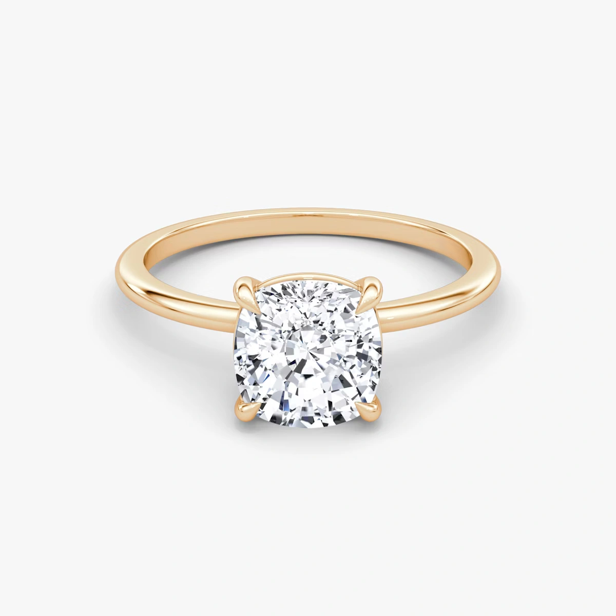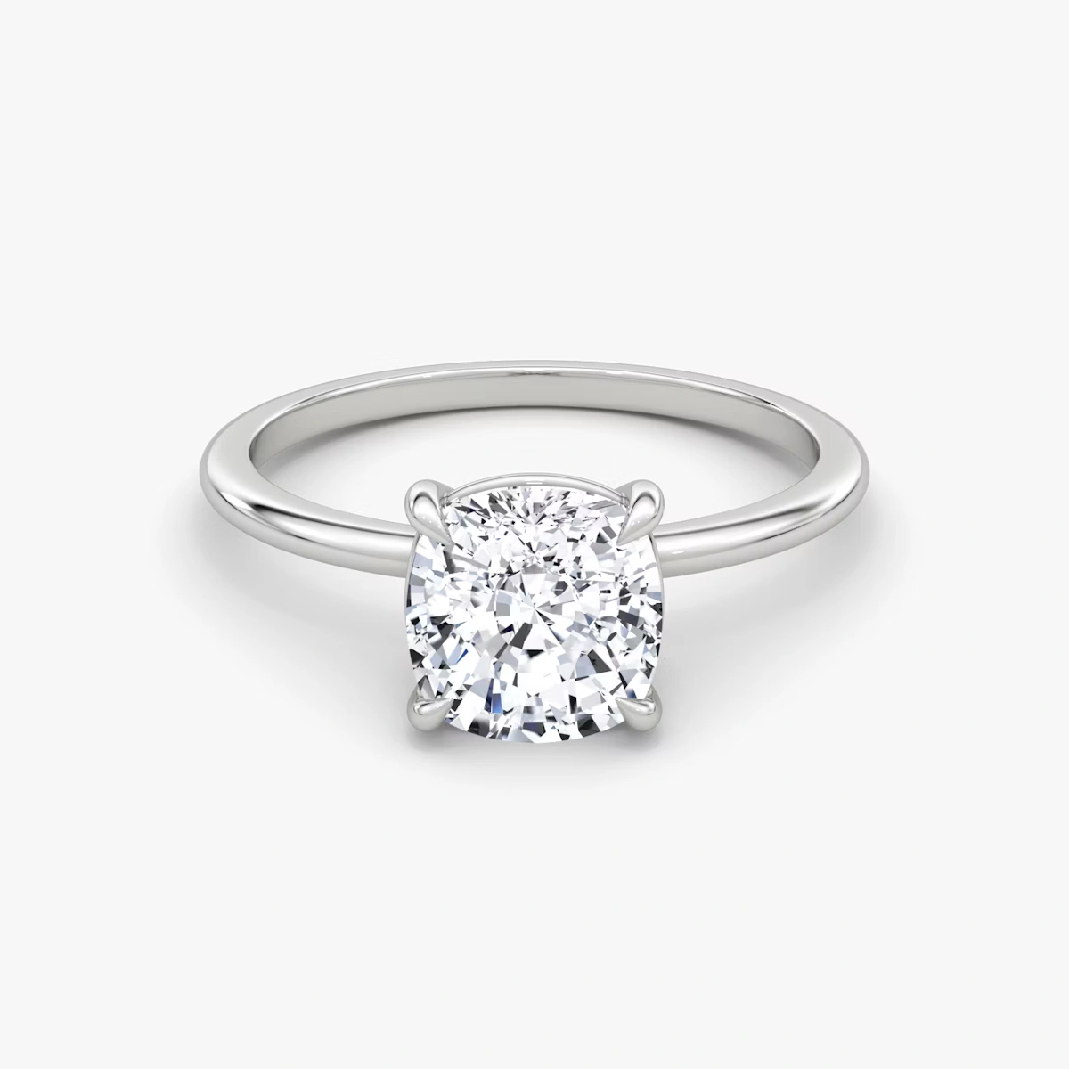Four curved prongs gently cradle the center stone, allowing light to enter from all angles for maximum brilliance and fire.
