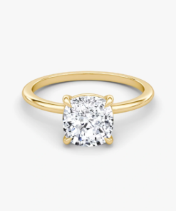 This ring, crafted in 14k gold with an Cushion-cut diamond and slender four-prong design, perfectly balances simplicity and luxury, making it an ideal symbol of eternal love and sophisticated taste.”