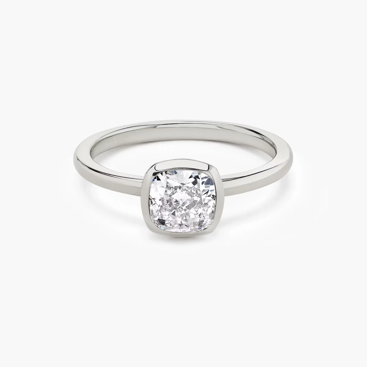 The bezel setting draws in and reflects light, ensuring the diamond sparkles brilliantly from every angle.