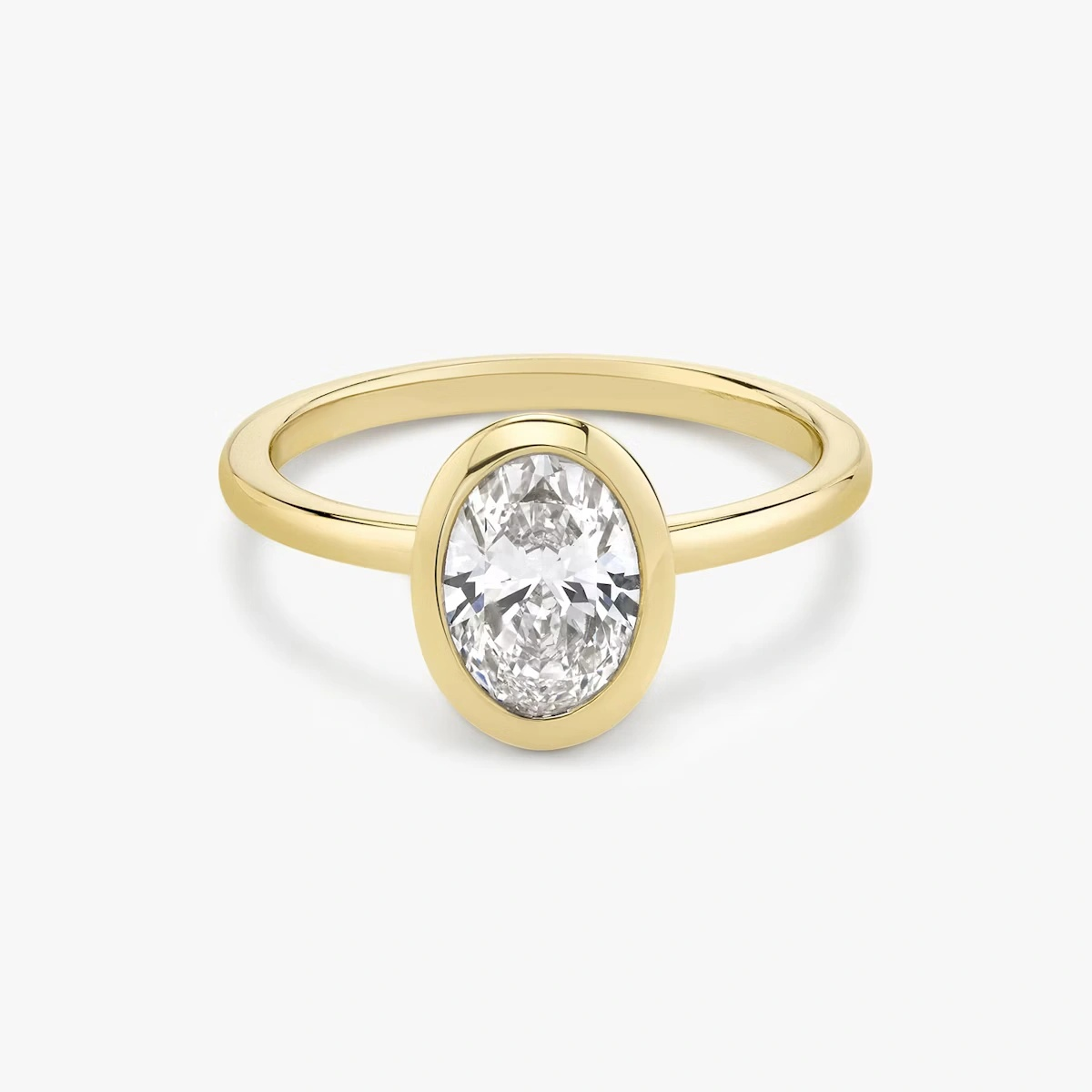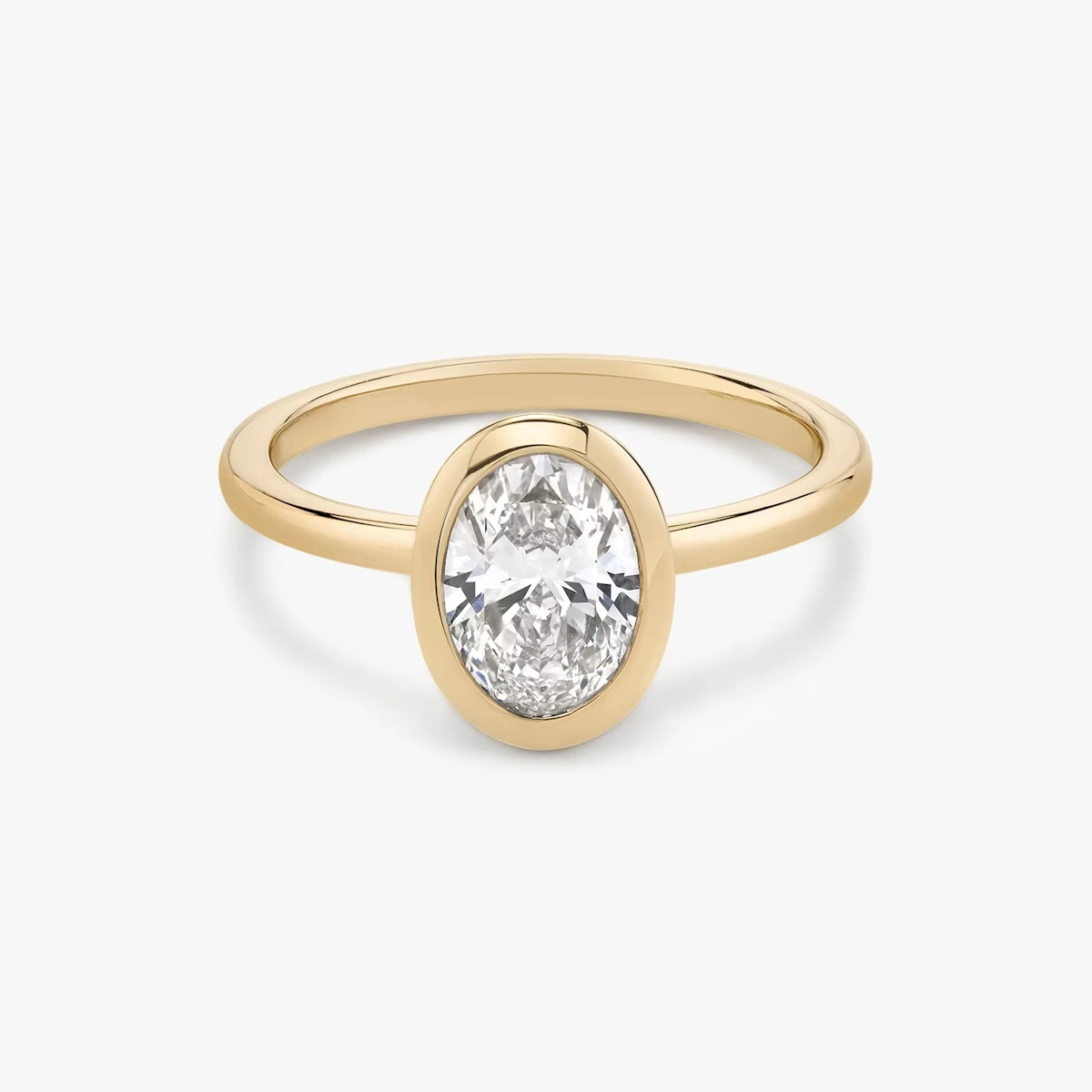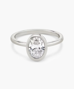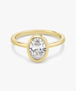 This ring, crafted in 14k gold with an Oval-cut diamond and classic bezel design, perfectly merges modern elegance with historic charm, making it the ideal symbol of timeless love and style.”