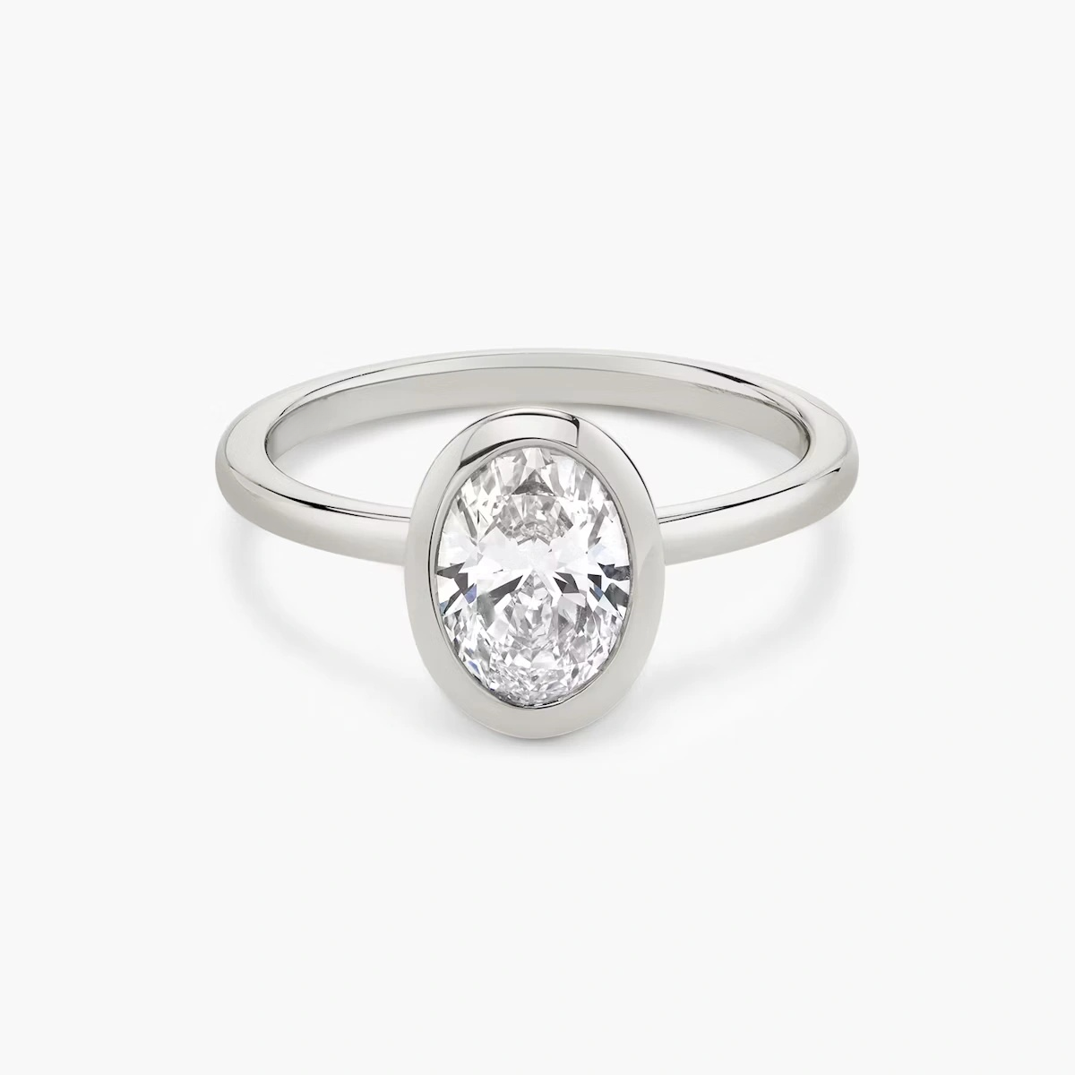The bezel setting draws in and reflects light, ensuring the diamond sparkles brilliantly from every angle.