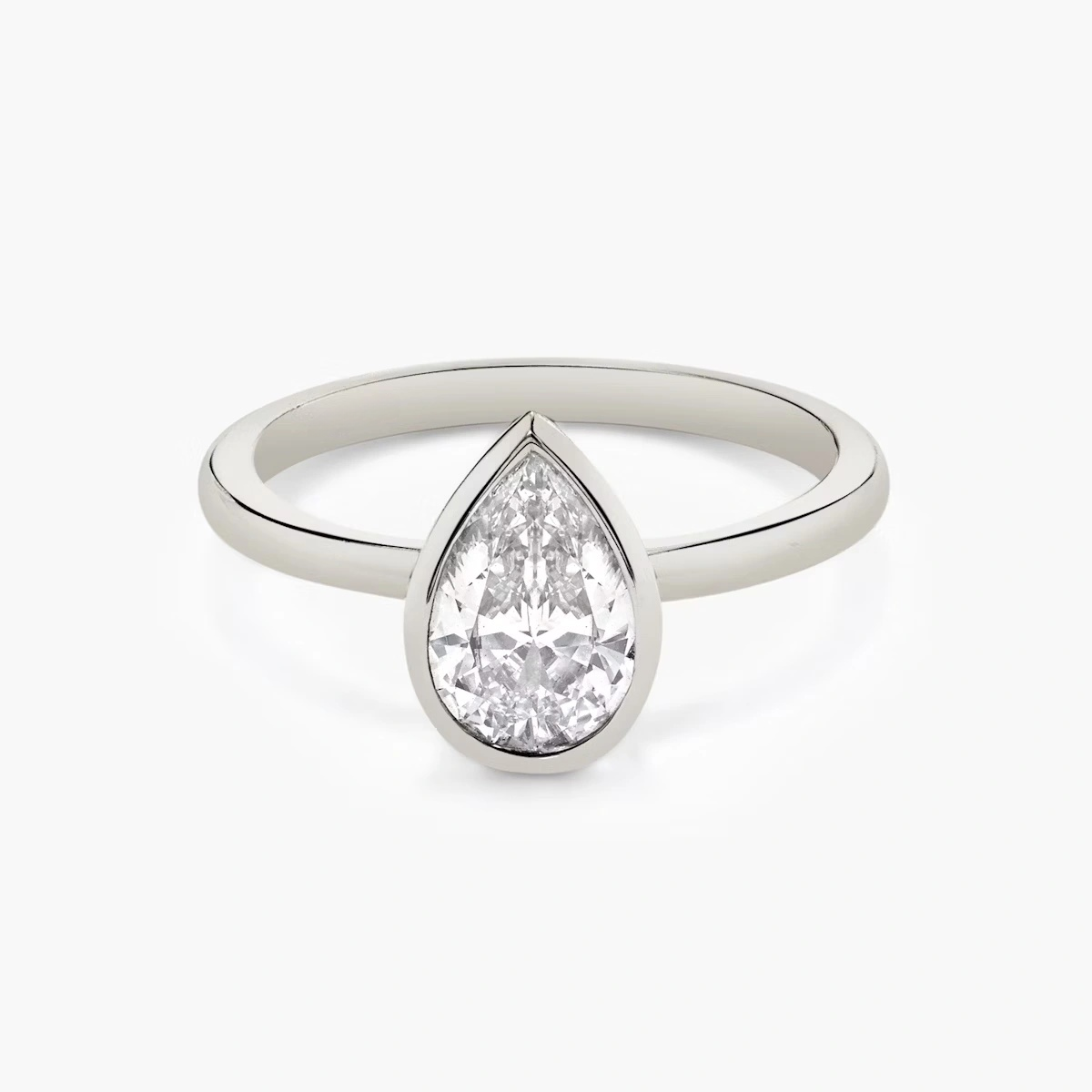 Set with an Pear-cut diamond, renowned for its mesmerizing geometric steps and captivating brilliance.