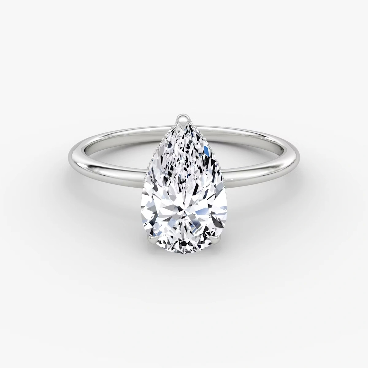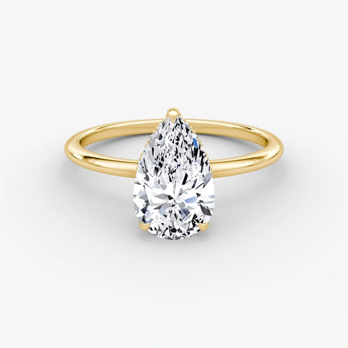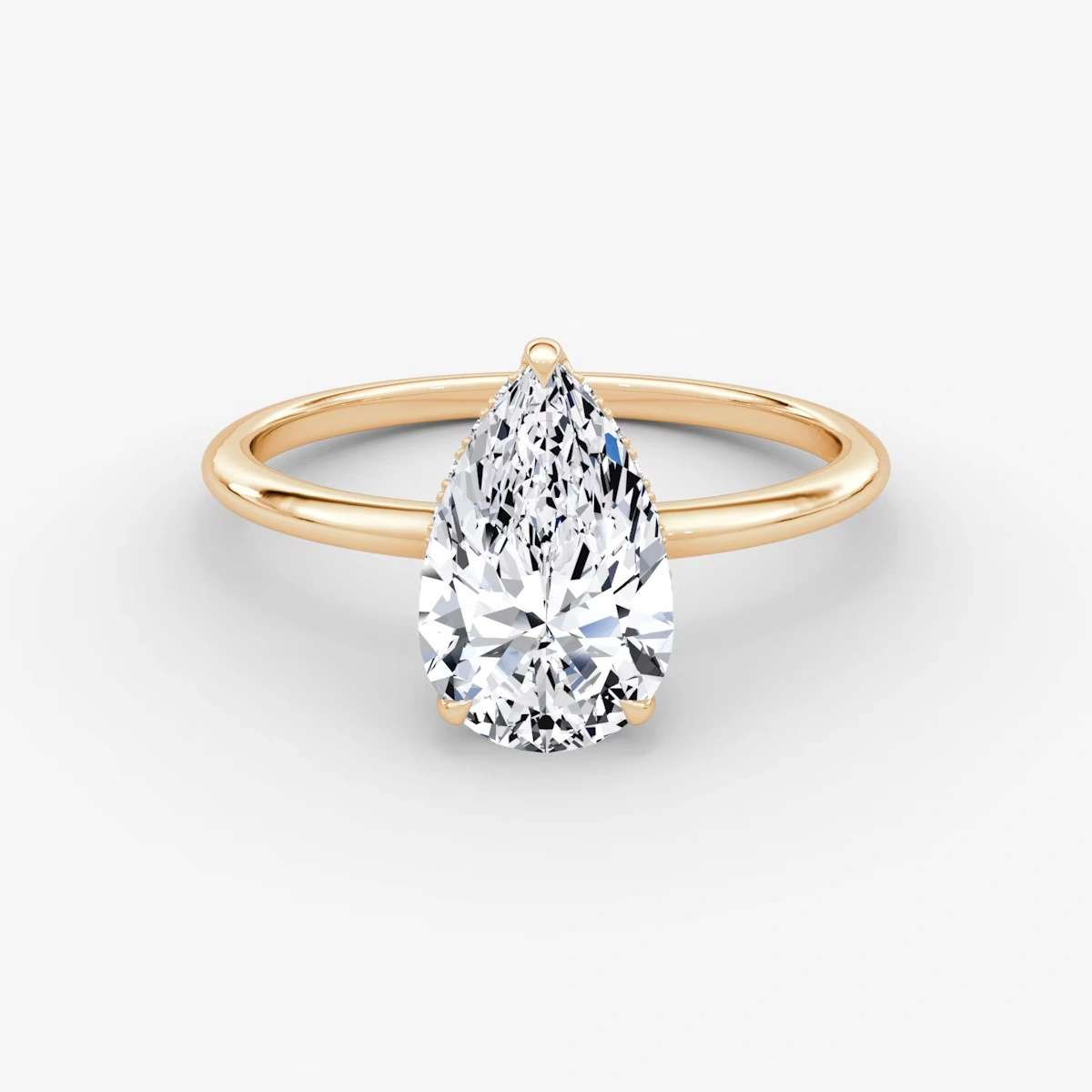 This ring, crafted in 14k gold with an Pear-cut diamond, prong setting, and hidden halo design, combines modern elegance with timeless charm, making it the perfect symbol of love and style.”