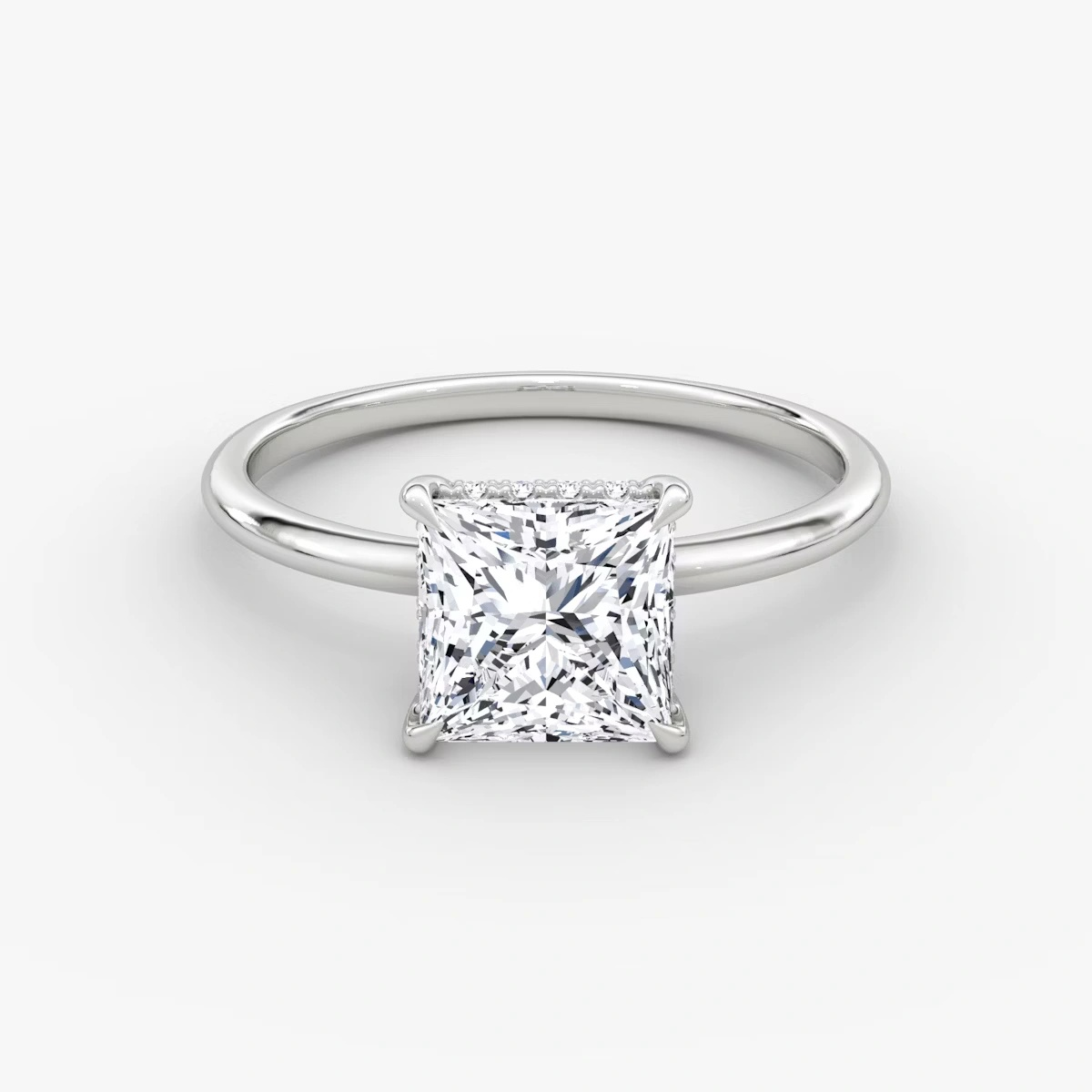 Set with an Princess-cut diamond, known for its mesmerizing geometric steps and captivating brilliance.