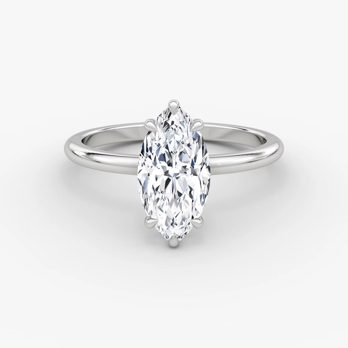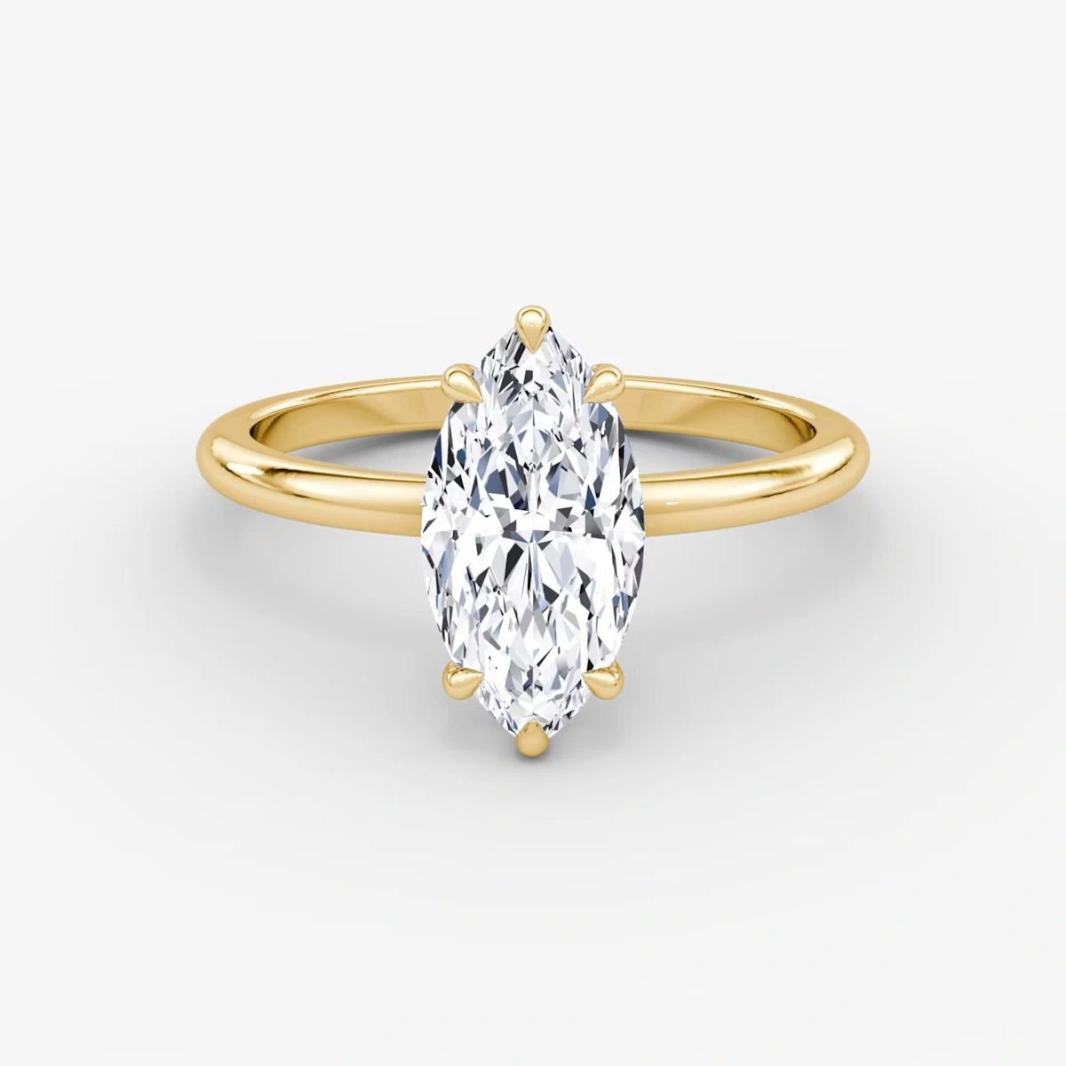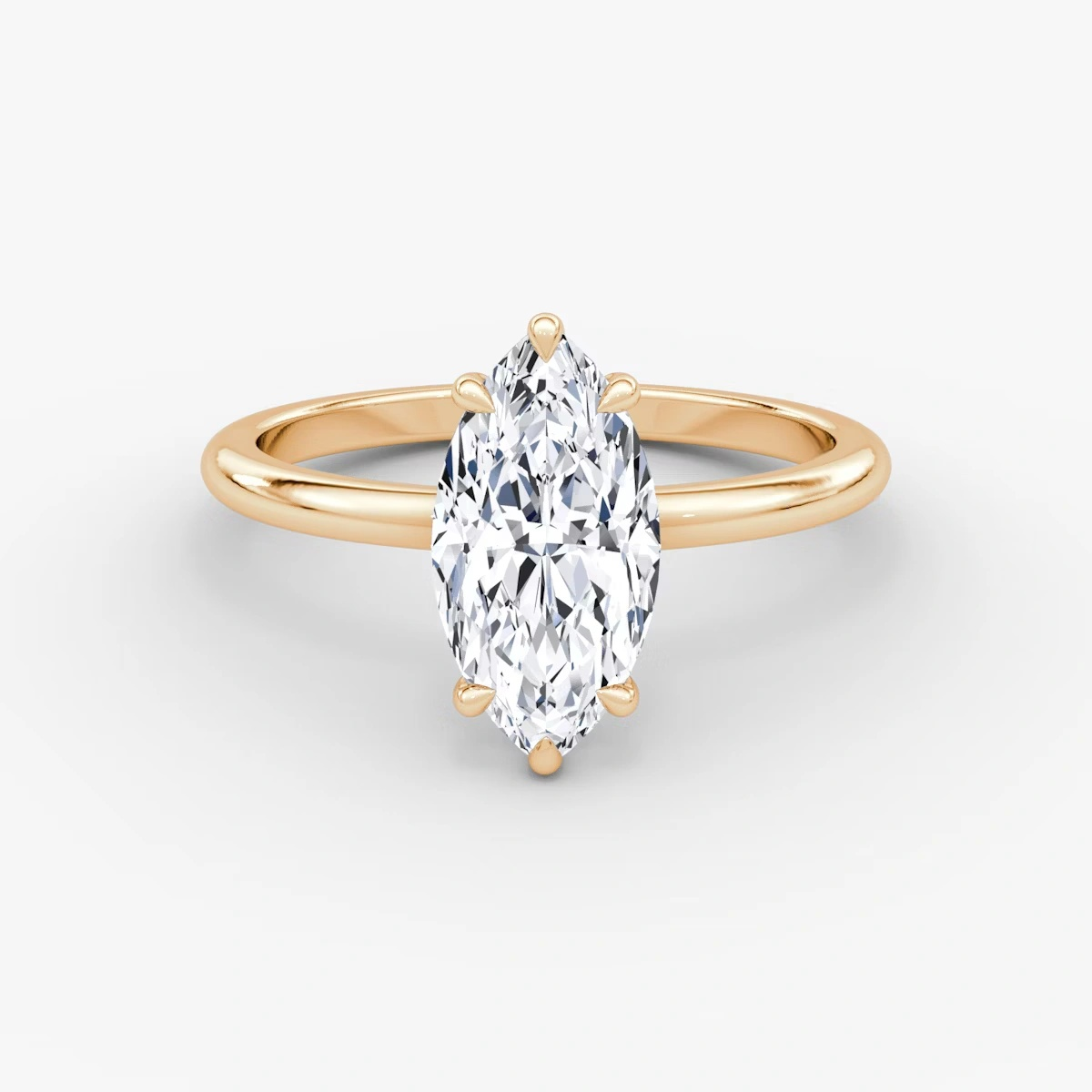 This ring, crafted in 14k gold with a Marquise-cut diamond and a classic solitaire design, perfectly blends modern elegance with timeless charm, making it the ideal symbol of love and commitment.”