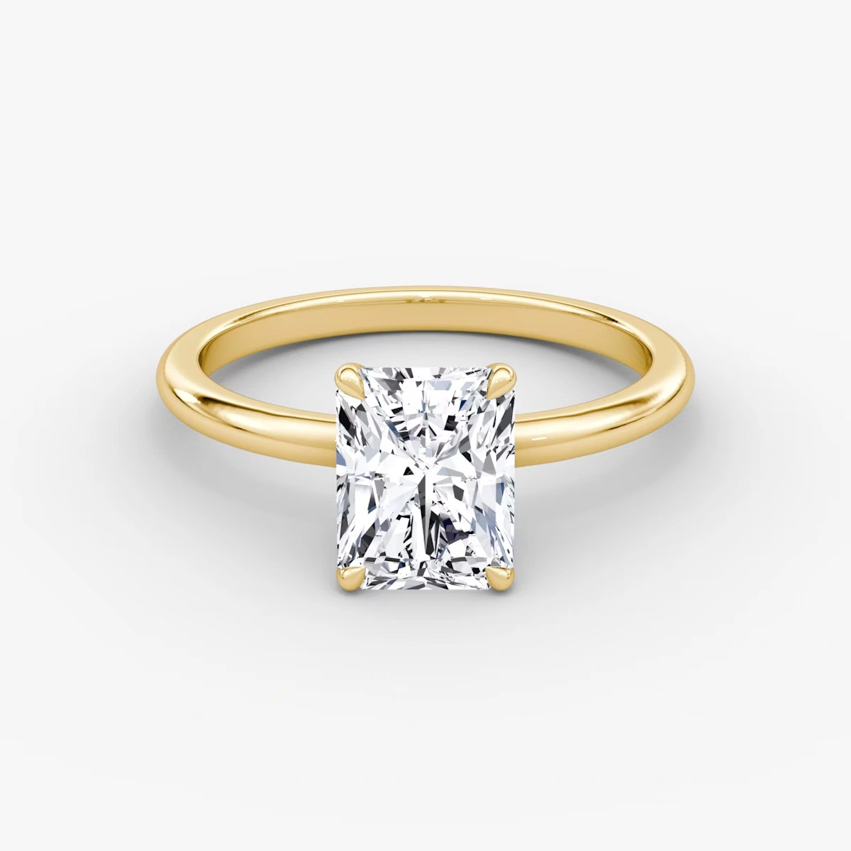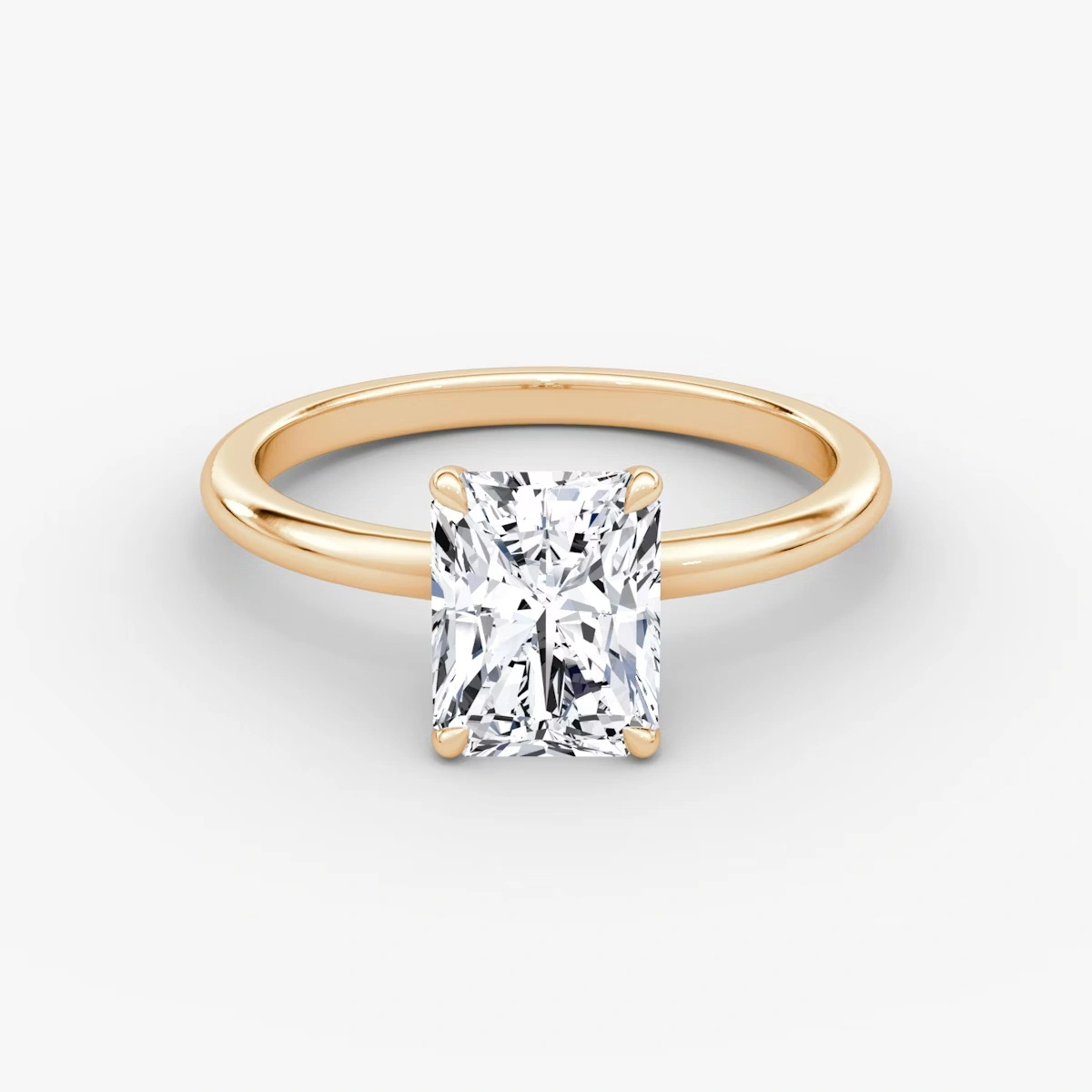 This ring, crafted in 14k gold with a Radiant-cut diamond and a classic solitaire design, perfectly blends modern elegance with timeless charm, making it the ideal symbol of love and commitment.”